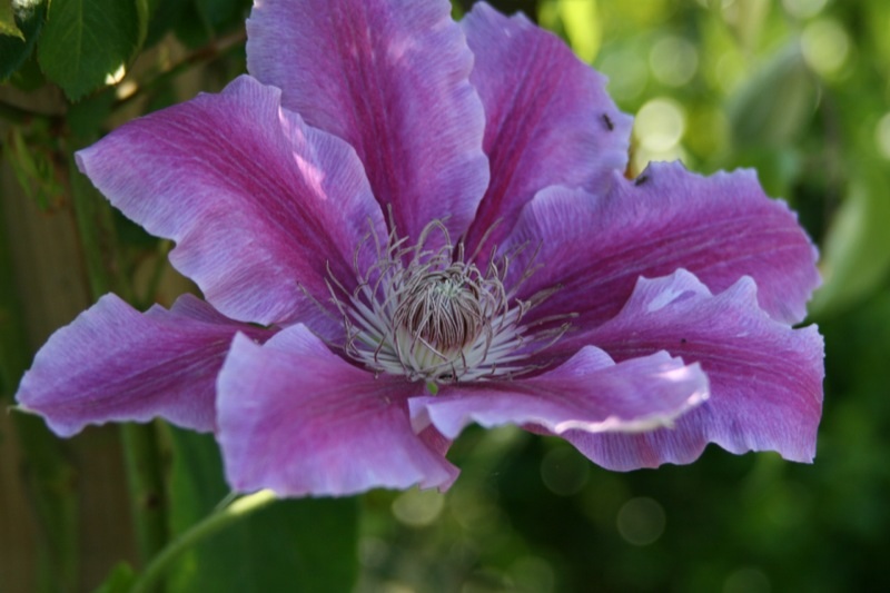 De clematissen zijn in volle bloei, en zit vol met knoppen. Het leuke ervan is dat ze twee keer bloemen geven, dus …